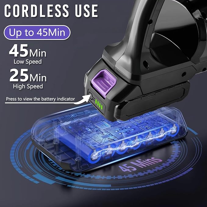 Long Runtime: Up to 50 minutes on low, 15 minutes on max, with rechargeable battery.