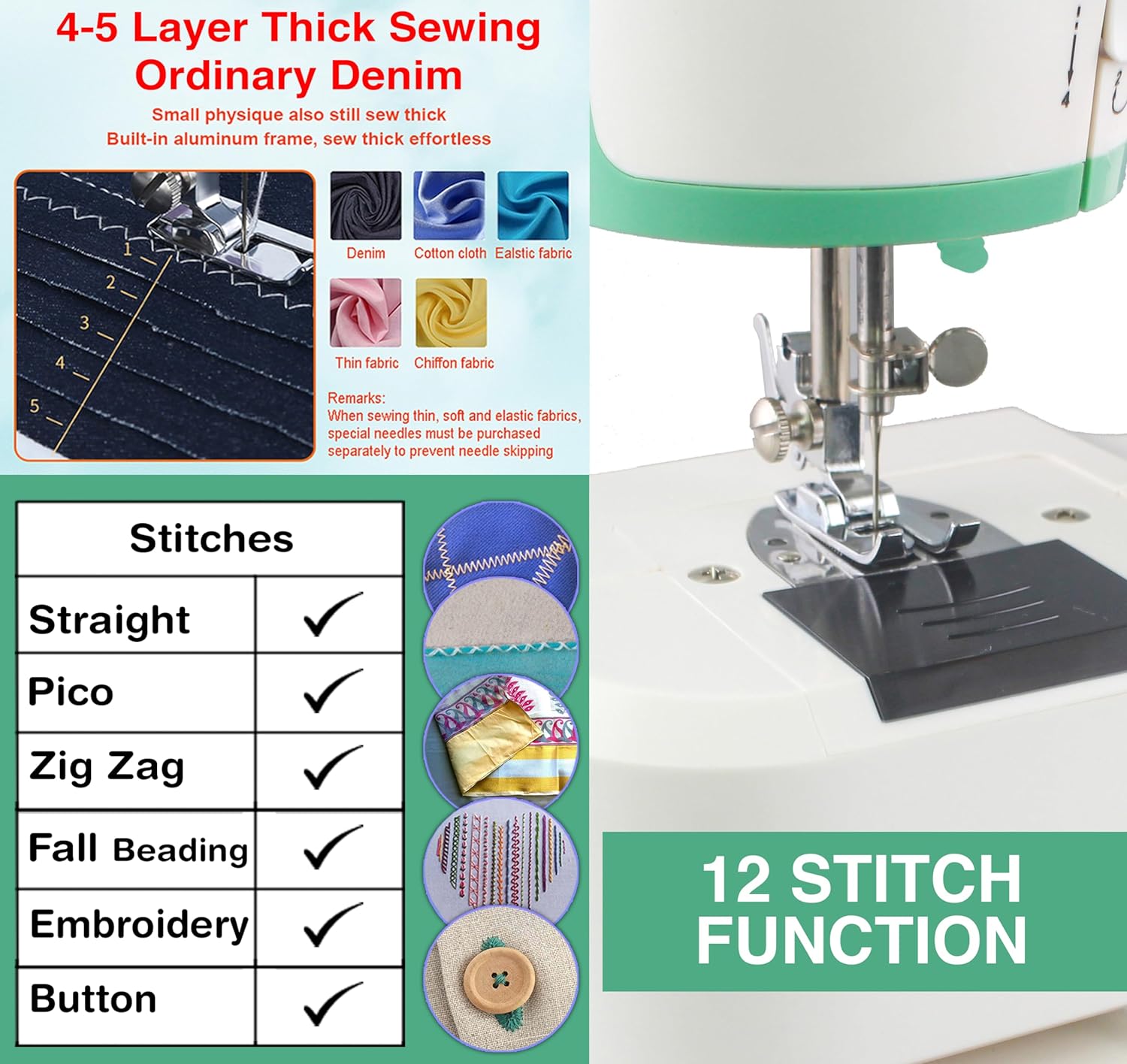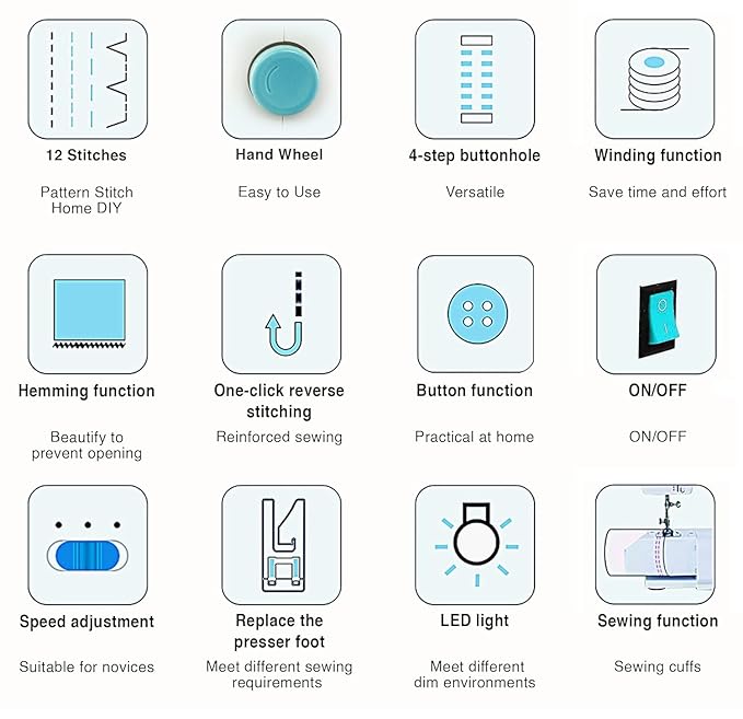 12 Stitch Patterns: Suitable for a wide range of sewing tasks.
